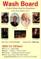 | Wash Board Live 2025 六反俊典(Gt)前田順三(Bass) 石井聡至(Dr)保本園枝(Key)瑞姫(Vo)盛 行男(Vo) Open 19:00 Start 19:30 3000円(ドリンク別) ご予約・お問合せは各出演者、またはライブジュークまで♪ | ||
