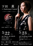 | 下田薫 Anniversary Concert ~これからも音楽とともに~ 下田薫(Fl)下田望(Pf)Open 18:15 Start 18:45 前売3000円 学生1500円(当日\500UP/ドリンク別) お問い合わせ:0823-22-3210(公声堂) | ||