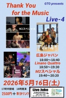 | Thank You for the Music Live-4 Linano Quattro/M2スペシャル/広島ジャパンOpen 17:30 Start 18:00 2500円(ドリンク別) | ||