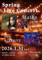 | Spring Live Concert Maiko/THE BIARRITZ Maiko Honda(Vo)Takashi Fujioka(Pf) Hiroshi Munaka(Gt)Kazuho Sugita(Bass)Takanori Hoshita(Dr)Open 18:00 Start 18:30 2500円(ドリンク別) | ||